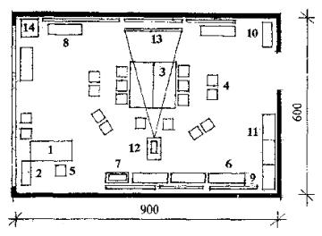 инвентаря; 12 - подставка под проекционную аппаратуру; 13 - экран свёртывающийся; 14