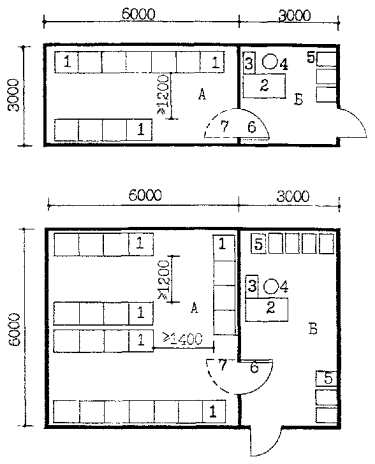 металлическая решетчатая Рис. 6.2. ПОМЕЩЕНИЯ ДЛЯ ХРАНЕНИЯ, ЗАРЯЖАНИЯ И ЧИСТКИ ОРУЖИЯ 1 - стол