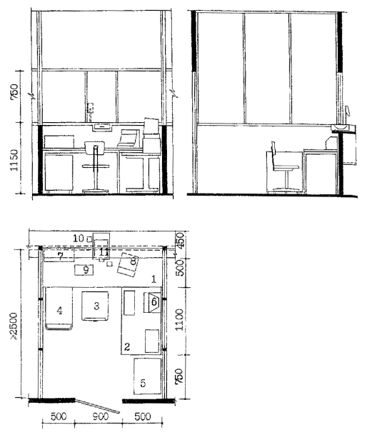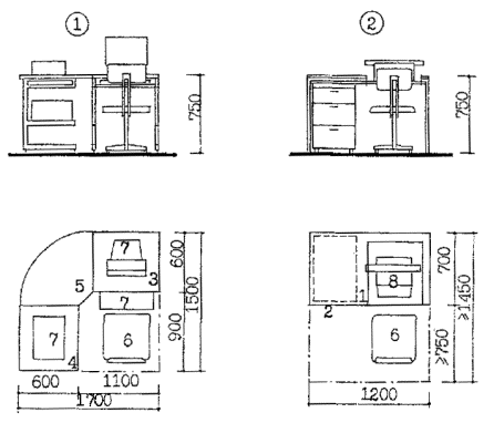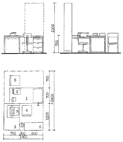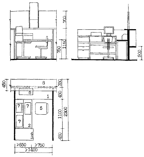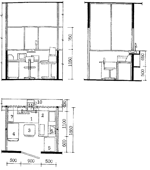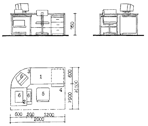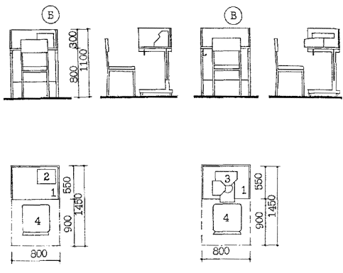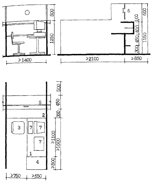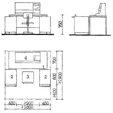 из матового стекла Рис. 4.12. РАБОЧЕЕ МЕСТО СОТРУДНИКА КАССЫ ПЕРЕСЧЕТА БАНКНОТ /ВАРИАНТ 1/ 1 - стол