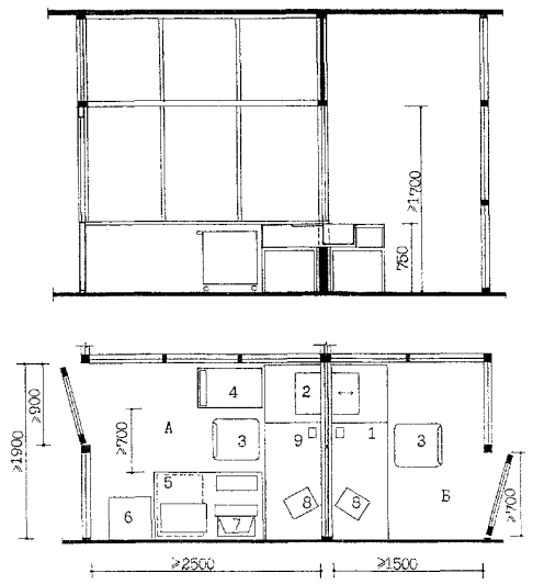 металлическая дверь 8 - бронедверь 9 - решетчатые