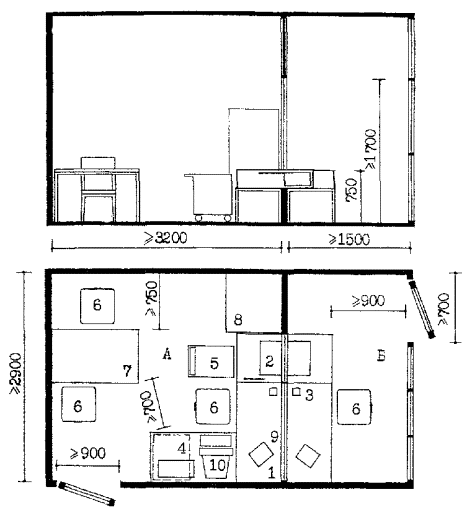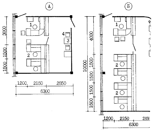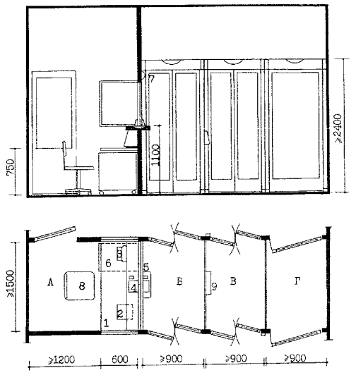 настенный Рис. 6.4. ПОМЕЩЕНИЕ БЮРО ПРОПУСКОВ НА 1 РАБОЧЕЕ МЕСТО /ВАРИАНТ 2/ А - пост