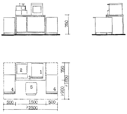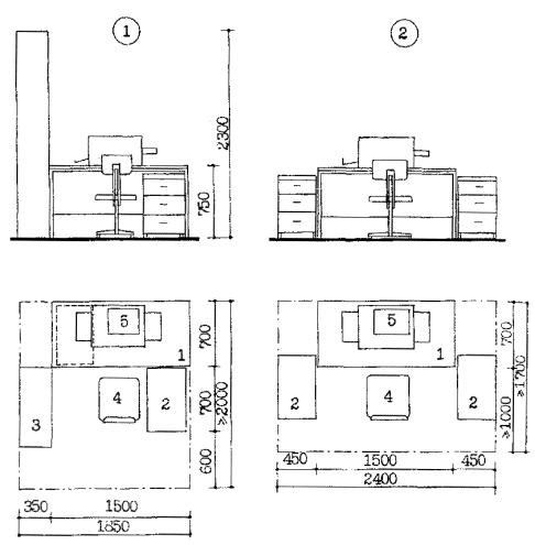 из матового оргстекла Рис. 4.13. РАБОЧЕЕ МЕСТО СОТРУДНИКА КАССЫ ПЕРЕСЧЕТА БАНКНОТ /ВАРИАНТ 2/ 1 - машина для