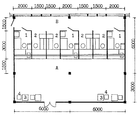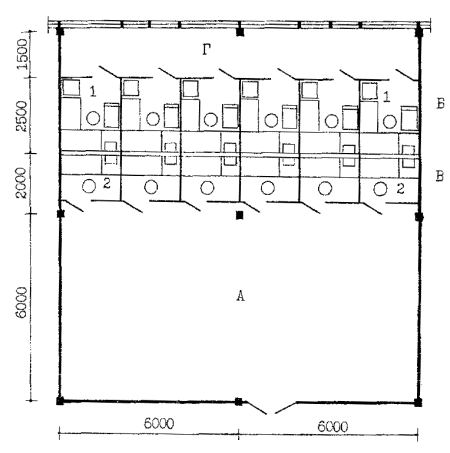 2 - для зданий общей площадью 2 - 3,5 тыс. м2 ВАРИАНТ 3 - для зданий общей площадью 3,5 - 6 тыс. м2 1 - модули для