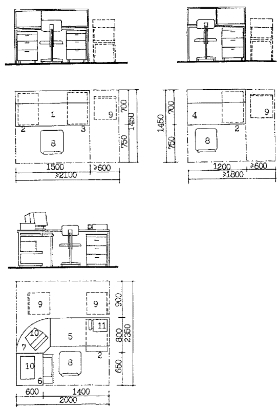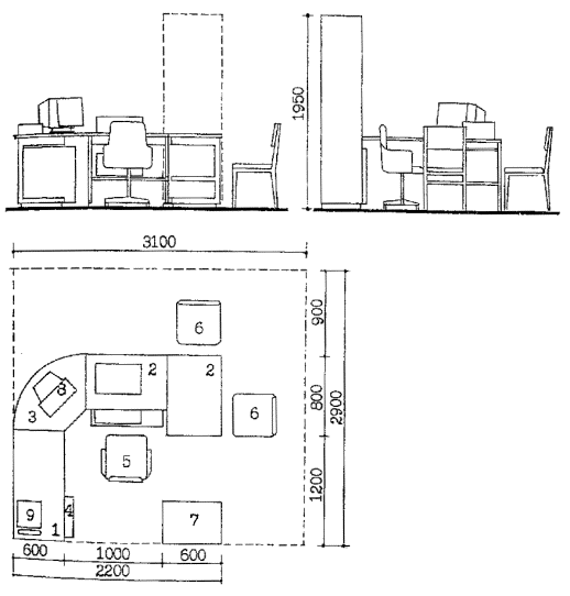 компьютерный стол 6 - сейф 7 - компьютер 8 - машина для