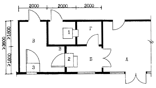 холодильник Рис. 6.1. ПОМЕЩЕНИЕ ПУЛЬТОВОЙ ДЛЯ ТЕХНИЧЕСКИХ СРЕДСТВ ОХРАНЫ А - помещение