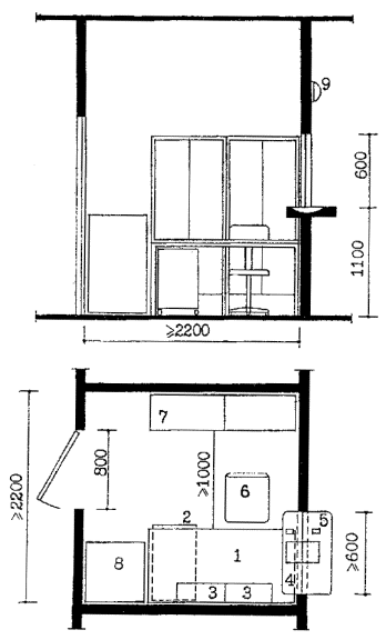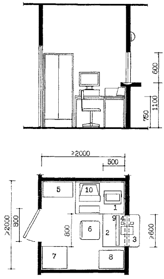 светильник настенный Рис. 6.3. ПОМЕЩЕНИЕ БЮРО ПРОПУСКОВ НА 1 РАБОЧЕЕ МЕСТО /ВАРИАНТ 1/ 1 - стол