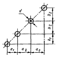 центрами двух соседних отверстий одинакового диаметра, измеряемое по