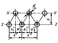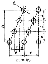 расстояние между центрами соседних отверстий в продольном направлении, мм; tl - расстояние между центрами соседних отверстий в