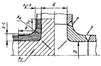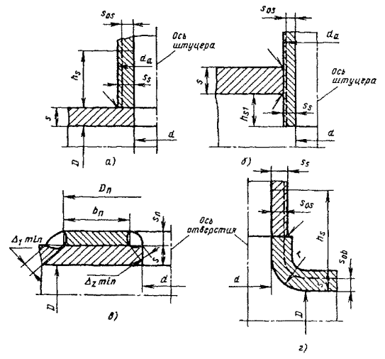 (кгс/см2); dα - наружный диаметр штуцера или трубы (ответвления), мм; ds - внутренний диаметр штуцера или трубы (ответвления), мм; dy - условный диаметр отверстия, используемый в расчетах при различных