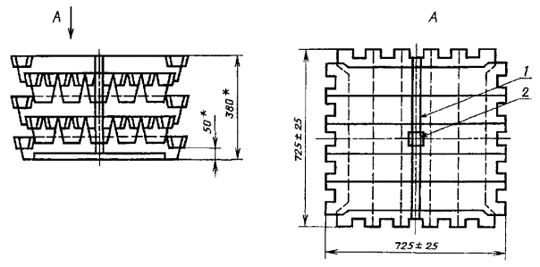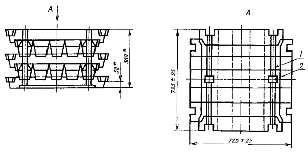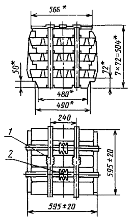 ____________ * Размеры для справок. 1 - упаковочная лента; 2 - замок для скрепления чушек Черт. 6 (Измененная