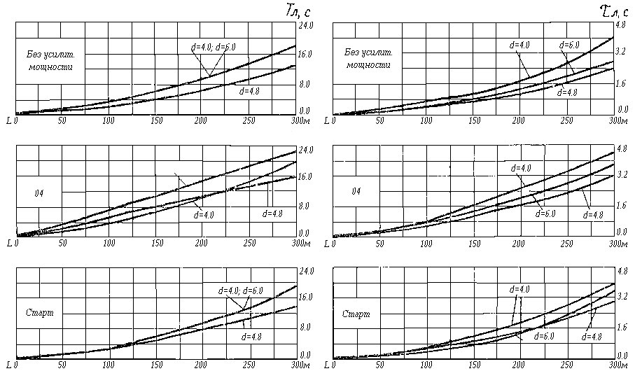 Здесь показаны временные характеристики ПЛС с внутренним диаметром трубопровода