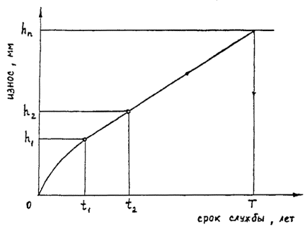 (трение, эрозионное) зависимость износа от времени линейная: h(t) = ho+C×t, где ho и С -