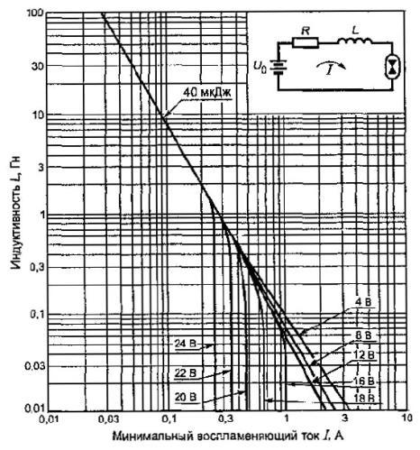 воспламеняющий ток (МВТ): Ток в омической или индуктивной цепях, вызывающий