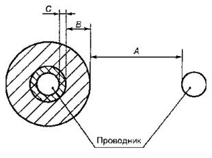 необходимого для того, чтобы вызвать пробой разделения между токопроводящими