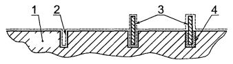 1 - подложка; 2 - бороздка; 3 - барьер; 4 - клей