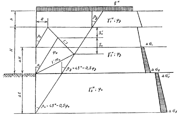 определяются по формулам: от массива грунта si (п. 1 настоящего приложения) на отметке 0 » » 1 » » 2 » » 2 » » 3 » » 4 от пригрузки на призме