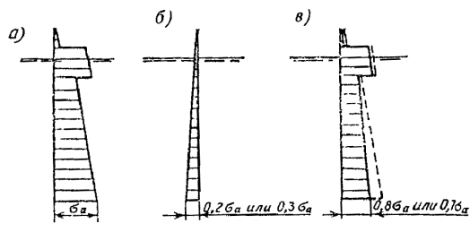 стенки к вертикали (при наклоне от грунта он положителен, при наклоне на грунт