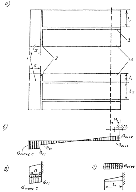 уровне низа стенки и интенсивность прямоугольной эпюры sxq от равномерной нагрузки на