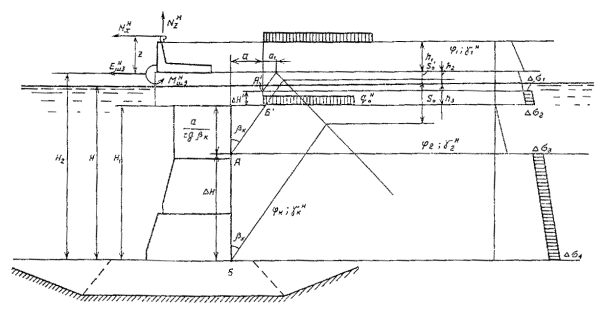 грунта на лицевую стенку (ординаты отпора si); 2) сопротивления отпора,