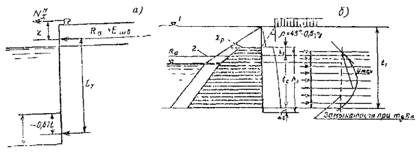 массива грунта, обеспечивающего анкерное крепление: a - при однородных грунтах; б - при разнородных грунтах ПРИЛОЖЕНИЕ 9