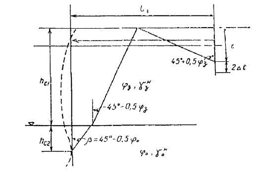 пересечения плоскости обрушения с поверхностью грунта; плоскость 2 - через точку 2