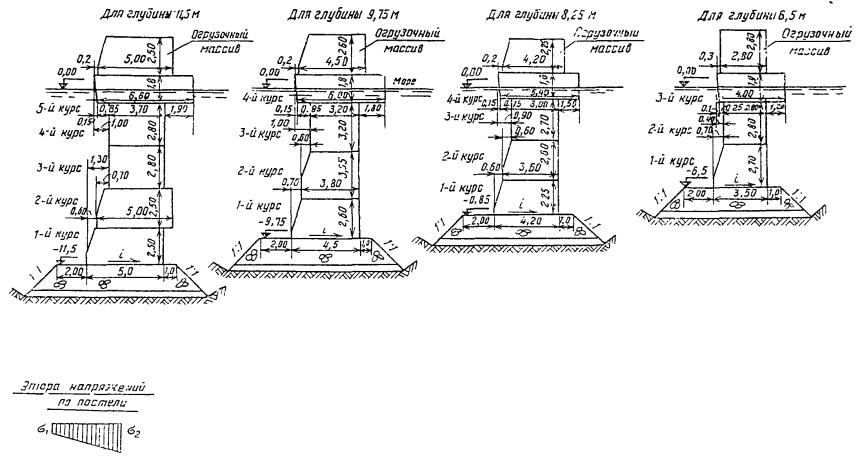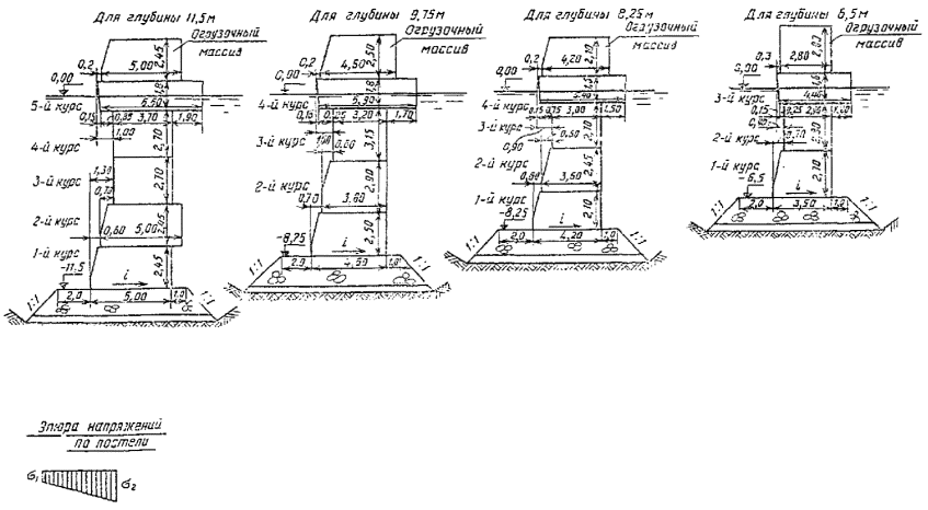 массивовой кладки, причалов типа «больверк» с анкеровкой на одном уровне и