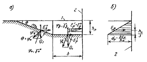 Определение активного и пассивного давлений на наклонную шероховатую стенку с наклонной поверхностью грунта перед стенкойИнтенсивность треугольной