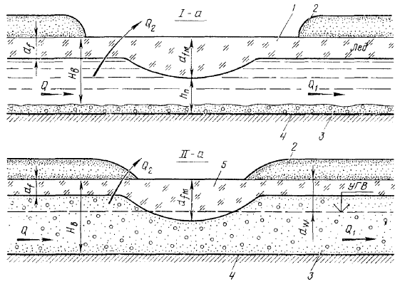 водонепроницаемых пород и живое сечение при промерзании сужается, поток