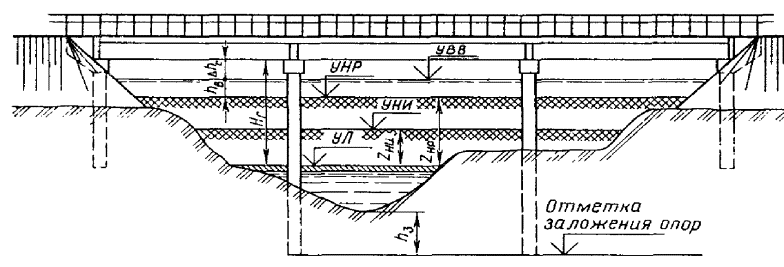 расход; НВ - глубина водотока до водоупора выше стесненного участка;
