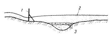 речных или грунтовых вод или разгрузке подземных вод. Когда в основании