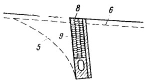 водоупор; 7 - поверхность земли; 8 - уровень наледи; 9 - уровень керосина