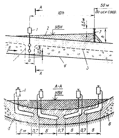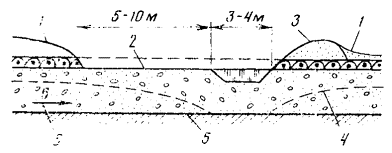неглубоким залеганием водоупоров в руслах рек и фильтрационных потоков