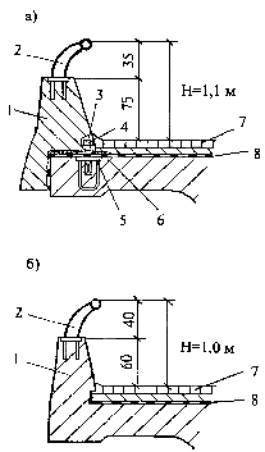 безопасности; 5 - гидроизоляция; 6 -раствор под блоком; 7 - стыковочная полоса