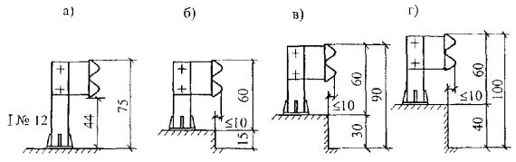 ≥ 50 см, имеющем наклонную лицевую поверхность - рис. 8 (шаг стоек 3 м для легких