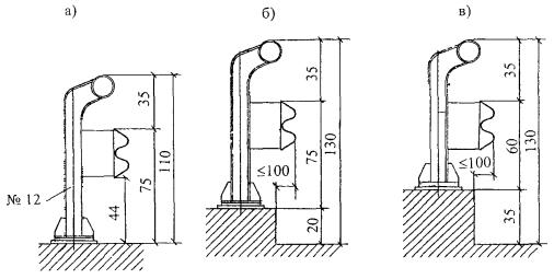 стандартного ограждения с трубой усиления (поручнем) с шагом стоек 3,0¸2,0 м (рис. 7 а). Допускается