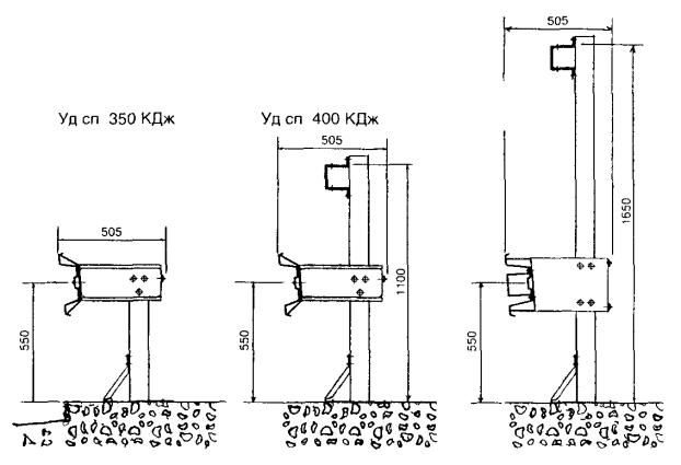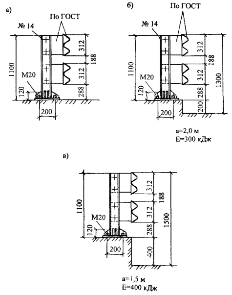установленных на цоколе высотой 20 см (Е = 325 кДж) Общая высота ограждения