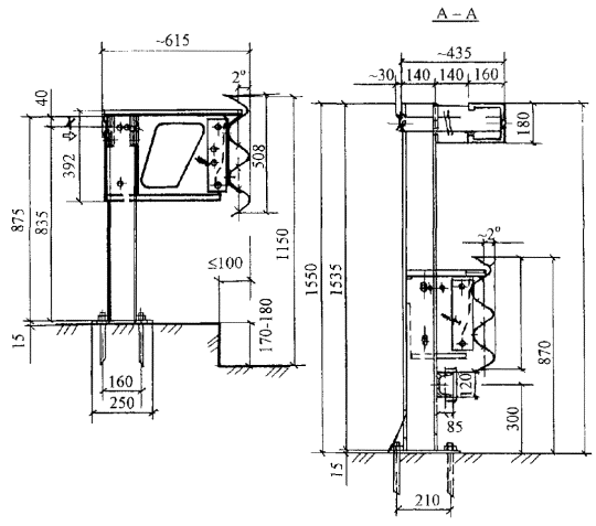консолей длиной 340 мм на стойках из гнутого швеллера 160х80х6 мм. Высота