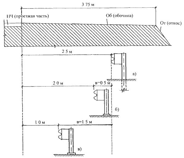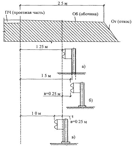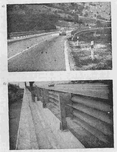 мостом. Рис. 16. Расположение ограждения на дороге III категории: а - ограждение на обочине; б