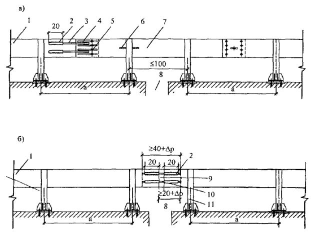 балки над швом; 8 - ДШ в пролетном строении; 9 - лицевая накладка; 10 -