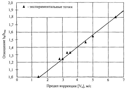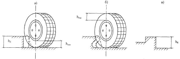 АНАЛИЗ ВОЗМОЖНОСТЕЙ ПРИМЕНЯЕМЫХ КОНСТРУКЦИЙ ОГРАЖДЕНИЙНастоящее приложение приведено с целью пояснить работу конструкций боковых ограждающих устройств мостовой группы (далее - ограждений) и возможное изменение их параметров при введении в них тех или иных изменений. Из сопоставления всех возможных комбинаций и разновидностей конструкций, сопоставления их характеристик с требованиями представилось возможным выбрать наиболее рациональные решения, которые и вошли в основной текст «Рекомендаций». В настоящем приложении дана оценка возможностей конструкций, которые разделены на четыре группы: первая - типовые и стандартные конструкции; вторая - конструкции, выполненные по аналогии с типовыми и стандартными (максимально приближенные к ним, но имеющие незначительные отличия, улучшающие их характеристики); третья - конструкции, применявшиеся в течение многих лет на дорогах общей сети, работоспособность которых подтверждена опытом эксплуатации; четвертая - новые отечественные и зарубежные конструкции, не зафиксированные ни в типовых проектах, ни в стандартах, но имеющие сертификаты на применение в России. 1. Типовые и стандартные конструкции1.1. Бордюрные ограждения.В различные годы нормативные документы предусматривали применение бордюров высотой 35 см, 40 см (для городов), 50 см. Тенденция постепенного увеличения высоты ограждений явилась следствием изменения парка автомобилей и скоростей их движения. Работоспособность бордюра определяется его способностью корректировать траекторию движения автомобиля в случае его наезда на бордюр (рис. 1). Достаточно объективным показателем корректирующей способности ограждения для конкретных типов автомобилей является предельно допустимая величина поперечной составляющей скорости движения автомобиля в момент его контакта с ограждением. Эта скорость (предел коррекции [Vп]) установлена экспериментально по моменту переезда ограждения колесом или поломки колеса. Экспериментальными исследованиями [5] установлено, что предел коррекции зависит от отношения высоты бордюра hб к высоте профиля шины hпш. Увеличение hпш приводит к снижению [Vп], так как автомобилю становится легче преодолеть препятствие. Введя показатель hб/hпш, можно рассматривать и сопоставлять наезды автомобилей с различными типами шин. Представленный на рис. 2 экспериментальный график для определения корректирующей способности бордюров (коррекции траектории) позволяет установить предельные величины поперечных составляющих скоростей движения [Vп] - для современных транспортных средств с имеющимися значениями hпш колес. Значение предельной величины коррекции может быть определено по формуле