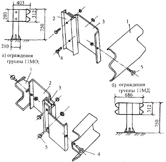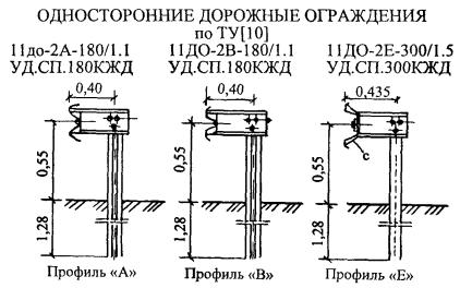 состоит из направляющей трехволновой балки высотой 500 мм, укороченных