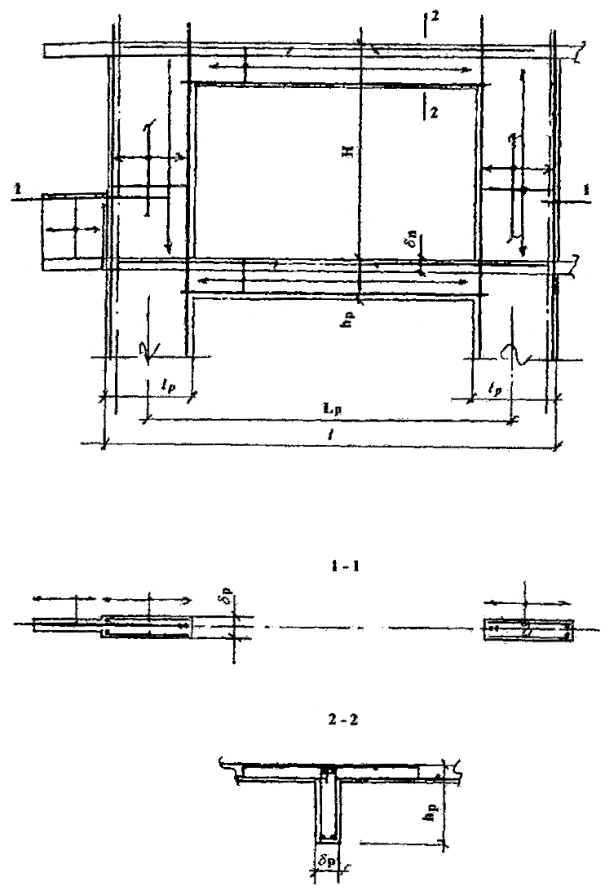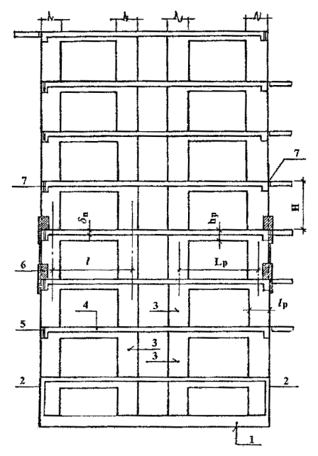и объединенных перекрытием и фасадными скрытыми или открытыми ригелями. При