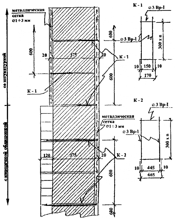 с двух сторон или оштукатуренных изнутри и облицованных кирпичом снаружи.