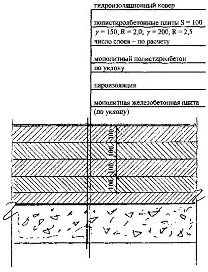 Утепление кровли осуществляется полистиролбетонными плитами. В качестве материала