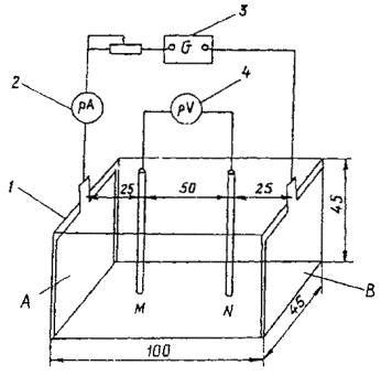стержень, помещенный в насыщенный раствор сульфата меди. Это наиболее часто