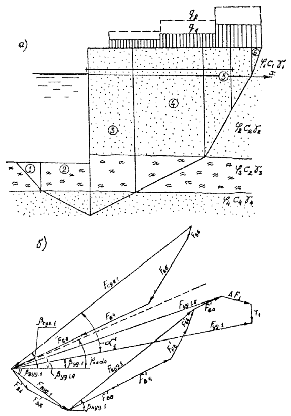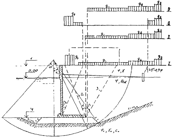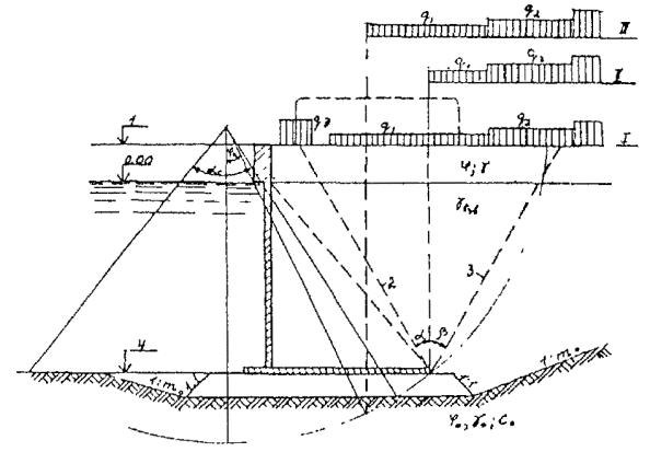 устойчивости; 1 уголковая стенка; 2 - грунт основания, 3 - грунт откоса; 4 -