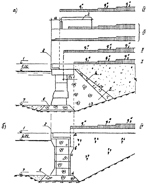массивовой кладки, причалов типа "больверк" с анкеровкой на одном