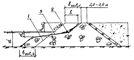 или размыве в районе расположения проектируемого сооружения и примыкающих