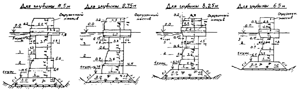 гравитационные, тонкие стенки типа "больверк", эстакады, мостового