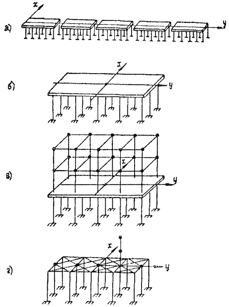 расчетные схемы сооружений эстакадного типа а, б, в - верхнее строение в виде жестких дисков; г - верхнее строение